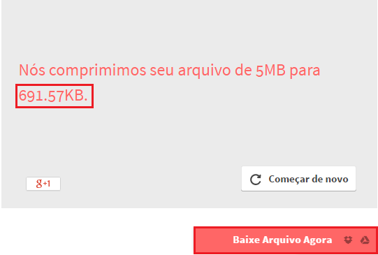 visualizar o tamanho atual do arquivo e baixá-lo por meio do botão Baixe arquivo agora.